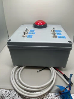 1. There are four colored buttons, a pilot light, and a moving sensor which has been connected with the controller.Â