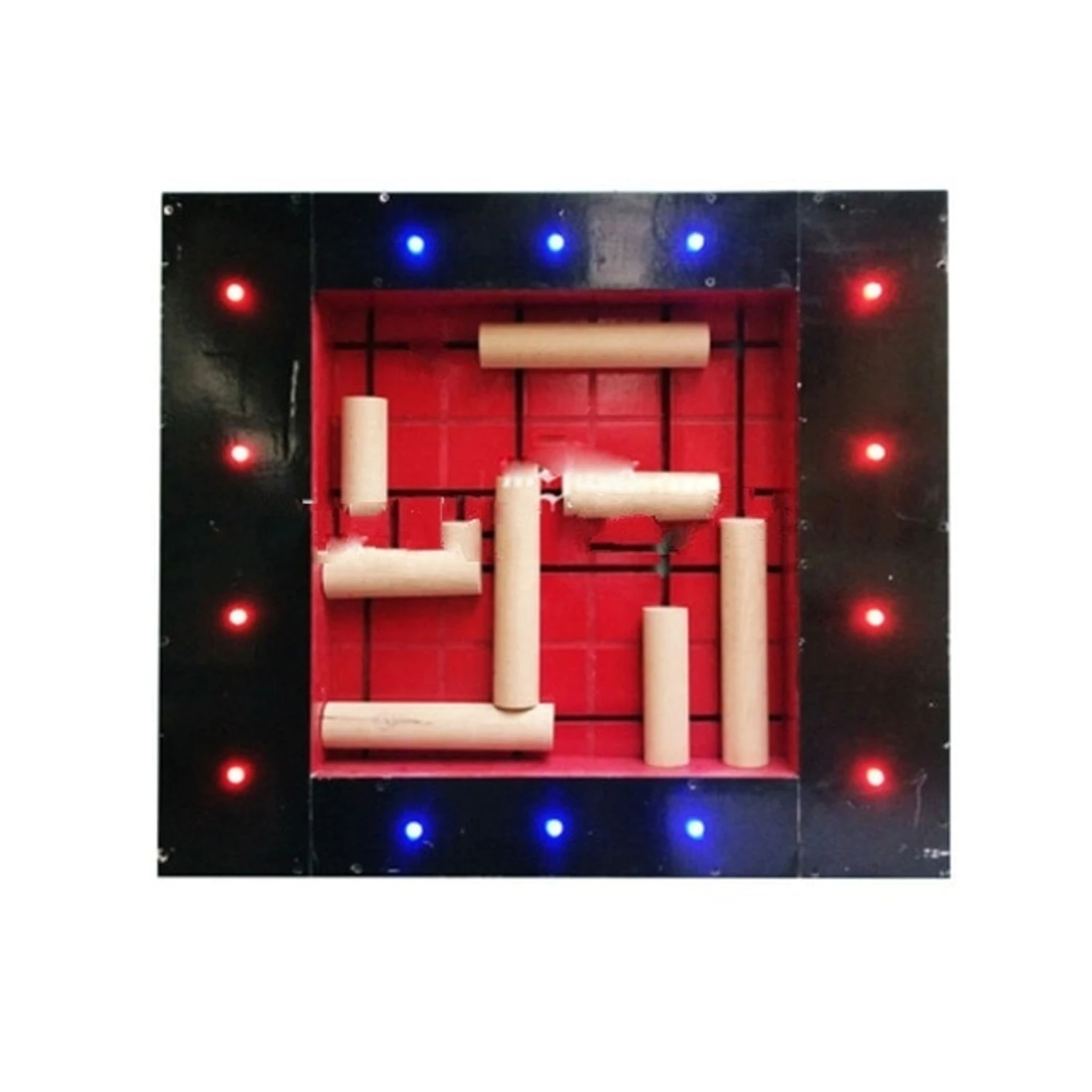 Player must move the eight logs to the correct position to trigger an electric lock or turn on a light or a motor.