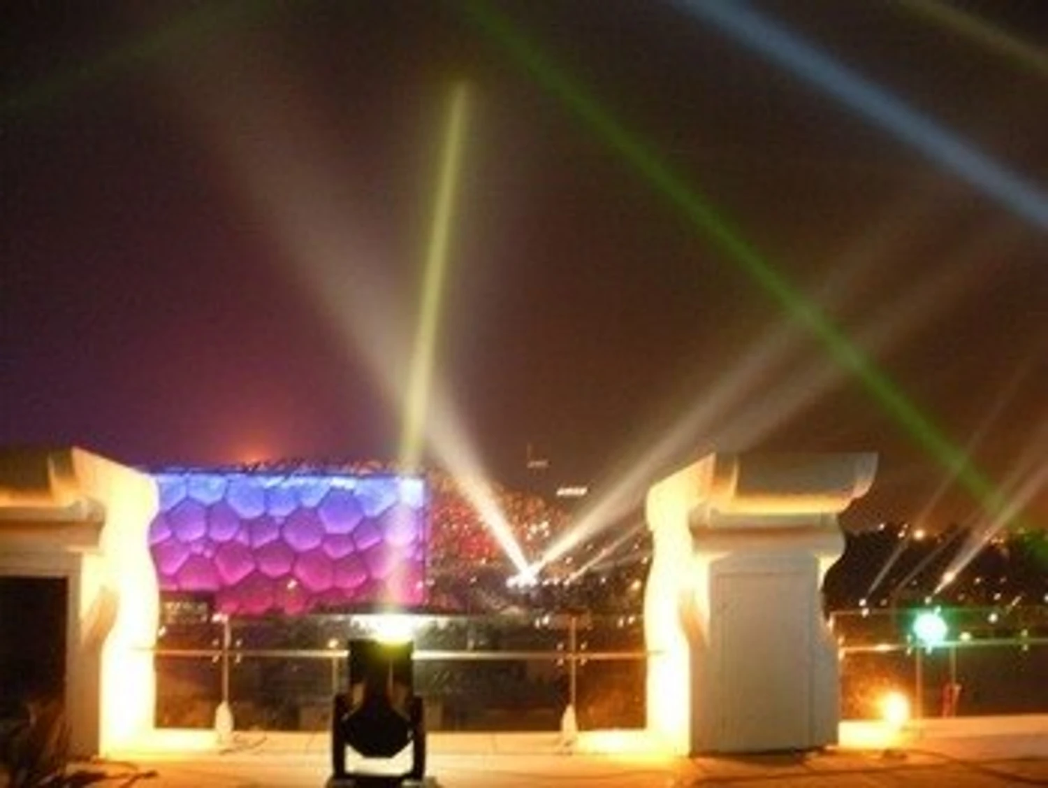 Beams of light can travel up to 8 kilometers depending on sky conditions.