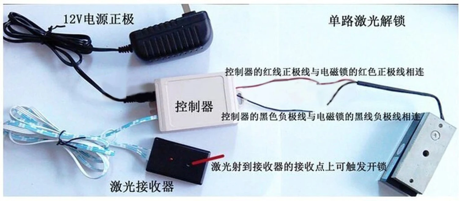 Set up this laser to the receiver to open a lock, drawer, cabinet, safe, etc.