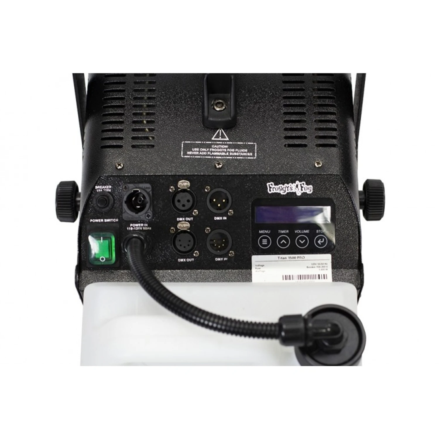 The Titan 1500PRO is the little sister to the 1800PRO but doesn’t lack any features. The Over-sized Heater Core increases run times, Quick Ready Fog Technology (QRFT) has you ready to fog in less than 10 seconds after full cycle and it is ready to fog, and Advanced Low Fluid Sensing shuts down the machine when you run out of fluid to protect the heater core. The 1500PRO also boasts a whopping 1550W heater core to produce over 30,000 CFM. Instant Stop Technology (IST) pulls fluid out of core to reduce spitting and give precise fog output.