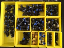 This kit contains most of the common fittings used for hooking up all air props, cylinders and solenoids.