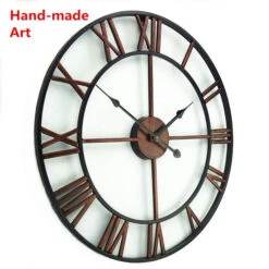 This is a vintage handmade large 3D iron-wrought wall clock with Roman numeral design.