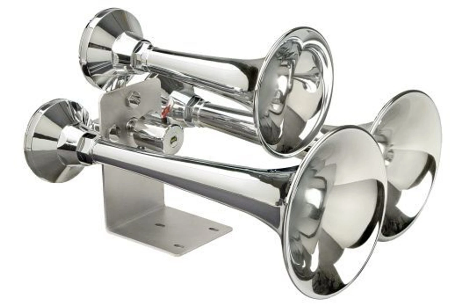 This foot-long three-horn system plays a triple tone train horn blast at 160 decibels of volume.