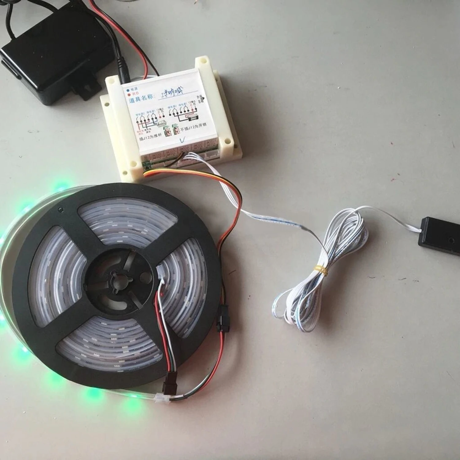 Players must scream, shout, holler, and yell at the top of their lungs to change the LED strip from green to red. It will flash red when it is triggered and stay bright red when it fills the strip and unlocks the door. It should take approximately 25 seconds to fill the 5 m (16 ft) LED strip.